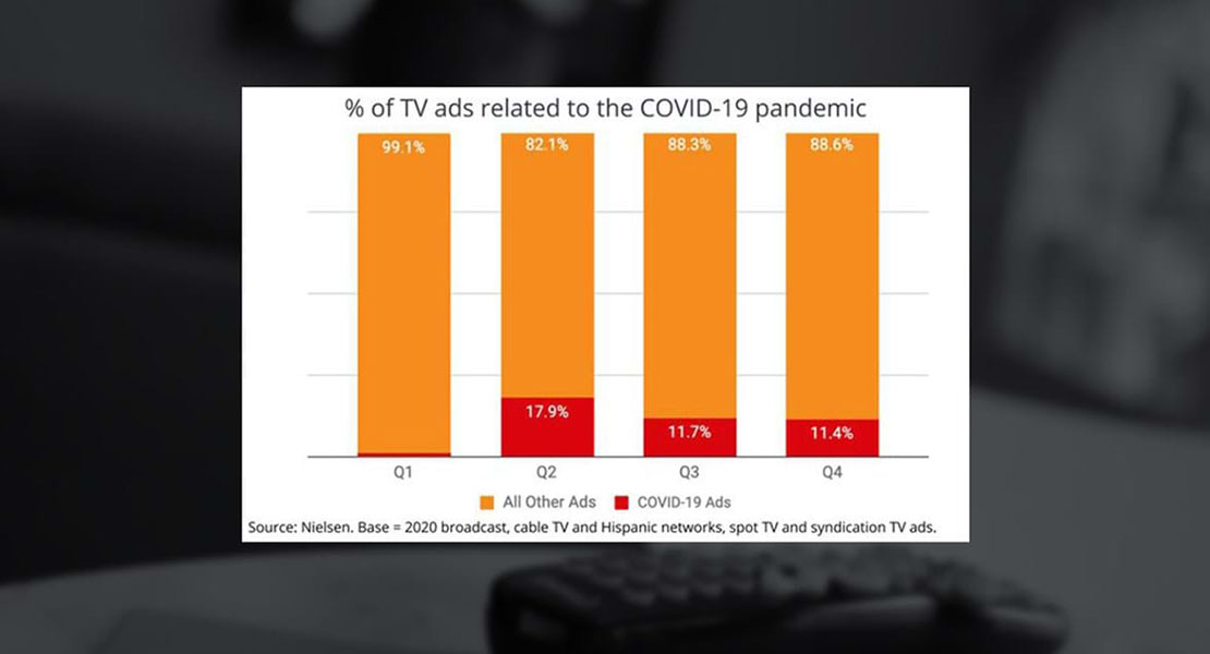 During the second quarter of 2020, COVID-19 ads peaked with nearly 1 in 5 of all U.S. national TV advertising related in some way to the crisis. The analysis, which was provided by Nielsen’s Senior Vice President-Product Management Ad Intel Heather Jordan, shows that COVID-19 related campaigns climbed from less than 1% during the first quarter of 2020, peaked at 17.9% in the second quarter and began ebbing to under 12% during the second half of the year. The data also revealed how quickly major U.S. TV advertisers and their agencies were able to respond to the crisis, despite challenges to the regular TV ad production processes. (MediaPost: 2/25/21)