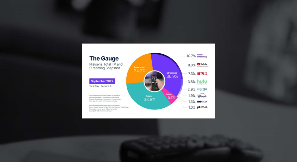 According to The Gauge, Nielsen’s Total TV, and Streaming Snapshot, YouTube has beaten out Netflix as the most popular streaming platform. This September, “streaming’s share of TV viewing hit another record-high share […] capturing 36.9% of overall television usage.” Broadcast also saw a share increase last month rising to 24.2%, its “largest month-over-month increase with a 12.4% bump in usage in September, which was driven by an impressive 222% uptick in sports viewing.” Nielsen also reported that over the last year, streaming usage increased by 9.2 share points or 34.6%. This month, Pluto TV is making its “debut” in The Gauge as it is “the first FAST service to hit the 1% share threshold and break out of the ‘other streaming’ category.” (TV Tech: 10/20/22)
