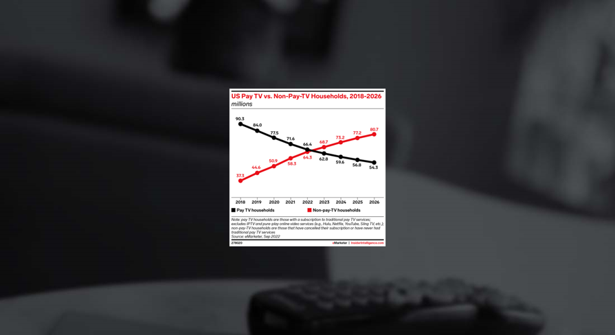 eMarketer released its Q3 report, which focuses on monetization, audience, and content. Included are “updated cord-cutting forecasts, Warner Bros. Discovery’s new approach to content, and Netflix’s dive into advertising and crack-down on password sharing.” The report seeks to answer three key questions: To what degree is pay TV viewership declining? How are streaming services expanding their advertising offerings? Which streaming services are pivoting their content strategies? Of note, “US pay TV will decline 7.2% this year to 66.4 million households.” (emarketer, requires subscription: 9/27/22)
