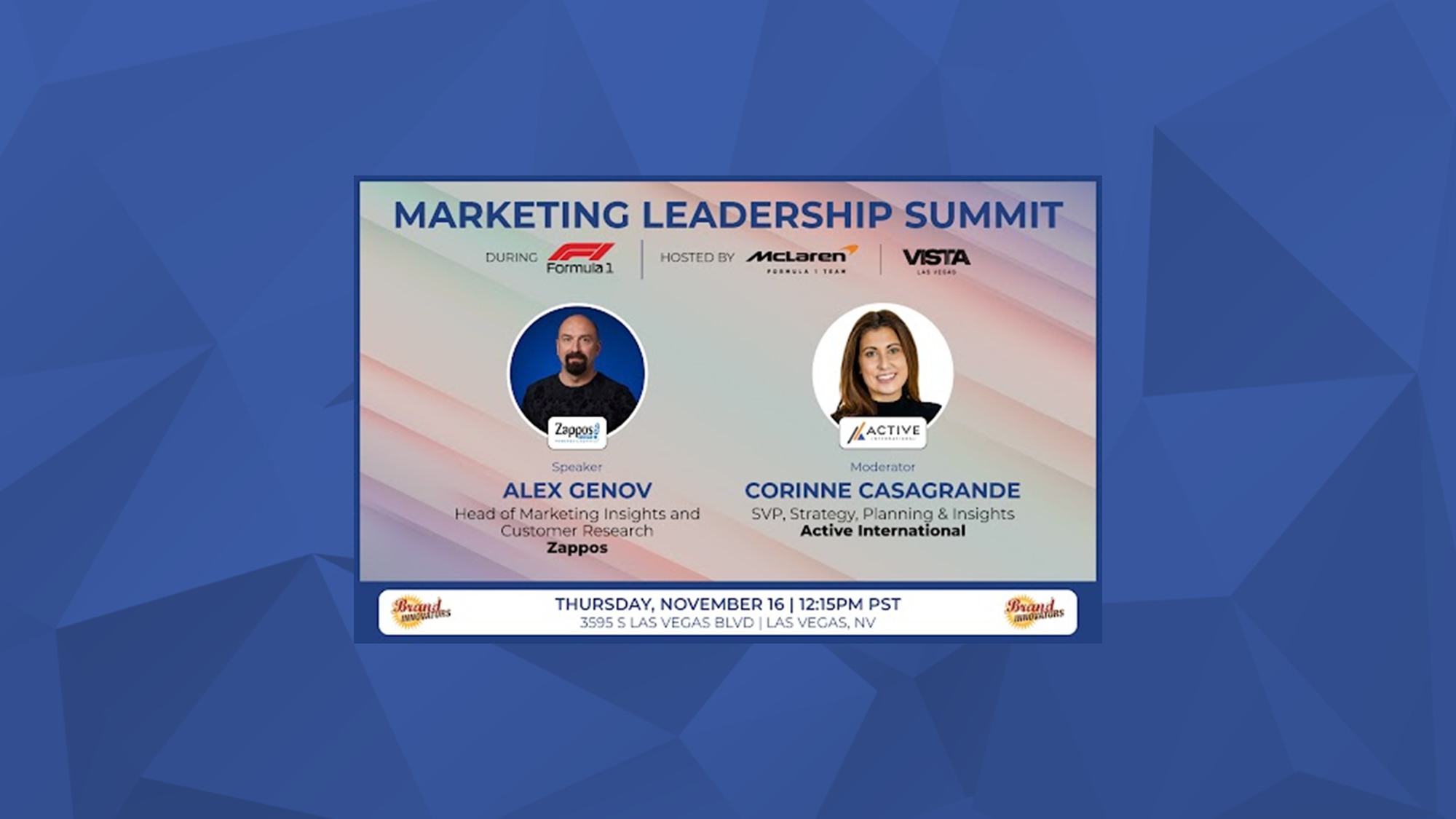 Join us at Brand Innovators’ Marketing Leadership Summit on Thursday, November 16th, 2023 at 12:15 PM PST, where Active’s Corinne Casagrande, SVP, Strategy, Planning & Insights, will moderate a fireside chat with Alex Genov, Head of Marketing Insights and Customer Research at Zappos!