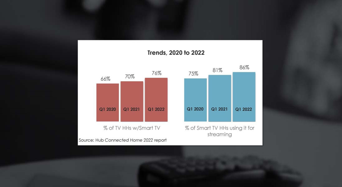 In their 4th annual “Connected Home” study, Hub Entertainment Research found that 76% of all TV households own a Smart TV; up 70% from last year. Additionally, the majority of all TV sets (57%) are “smart”; vs. only 45% in 2020. These ownership changes are fueling the way people view and access video, with 86% of smart TV homes regularly streaming programming through their built-in capabilities; a notable jump over 2020, when it was 75%. Of note, however, this means that 14% of Smart TV homes (or 1 in 7) still aren’t using their sets to stream programming. (TVTechnology: 4/7/22)